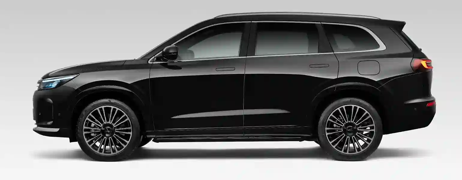 Профиль AITO SERES M7 — строгий, подчеркивающий статус владельца. Литые диски, выверенные линии, скрытые ручки, бесключевой доступ, сервопривод дверей и выдвижные ступени — здесь все продумано до мелочей и подчеркивает премиальный статус автомобиля.